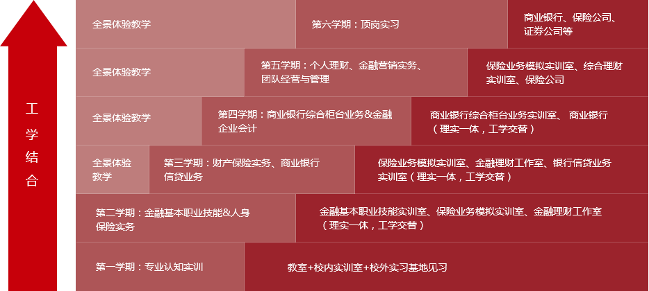 根據(jù)完成金融銀行類相關崗位工作任務所需要的職業(yè)能力,構建校內認知實訓、金融基本業(yè)務技能實訓、理實一體化課程、工學交替課程及頂崗實習的循序漸進實訓實踐教學體系。實踐教學體系整體設計如下圖所示: