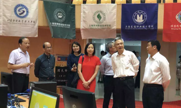 隨后廣州番禺職業(yè)技術學院校長何友義、財經(jīng)學院楊則文院長及各陪同視察的領導前往賽場視察工作。期間新加坡南洋理工學院校長一行也到現(xiàn)場進行參觀,并贊嘆道:“目前世界技能大賽還沒有的項目,你們已經(jīng)在全國開始舉辦了,太厲害了!”