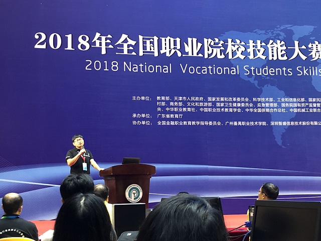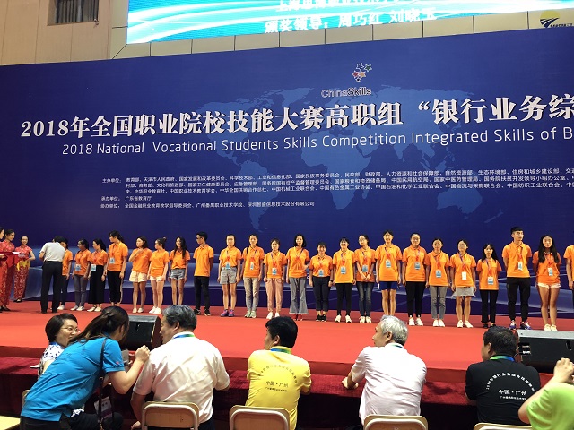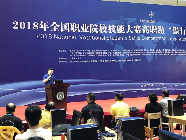 8點(diǎn)20分,國賽開幕式準(zhǔn)時(shí)在賽場舉行。開幕式由廣州番禺職業(yè)技術(shù)學(xué)院劉佳環(huán)副校長主持,教育部職業(yè)技術(shù)教育中心研究所劉寶民副所長、浙江金融職業(yè)學(xué)院黨委書記(全國職業(yè)教育教學(xué)指導(dǎo)委員會副主任委員、賽項(xiàng)執(zhí)委會主任)周建松、廣東省教育廳副巡視員胡振敏、廣州市教育局谷忠鵬主任督學(xué)、賽項(xiàng)執(zhí)委會副主任廣州番禺職業(yè)技術(shù)學(xué)院何友義校長、賽項(xiàng)執(zhí)委會副主任中國金融培訓(xùn)中心副主任(金融行指委秘書長)馬玉蘭、賽項(xiàng)專家組組長廣東金融學(xué)院王醒男副校長、賽項(xiàng)仲裁組組長國家開放大學(xué)吳國祥教授、賽項(xiàng)裁判組組長深圳信息職業(yè)技術(shù)學(xué)院質(zhì)量辦王溪若主任、賽項(xiàng)監(jiān)督組組長安徽省休寧縣教育局中華職教社秘書長項(xiàng)雪華、賽項(xiàng)執(zhí)委會委員深圳智盛信息技術(shù)股份有限公司董事長彭家源先生、廣東分賽區(qū)執(zhí)委會廣東省教育廳職業(yè)教育與終身教育處張副處長以及廣東省教育廳賽執(zhí)委的相關(guān)領(lǐng)導(dǎo)參加了開幕式。