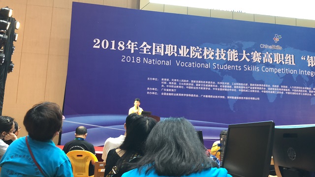 賽項(xiàng)裁判組組長深圳信息職業(yè)技術(shù)學(xué)院質(zhì)量辦王溪若主任宣布比賽成績