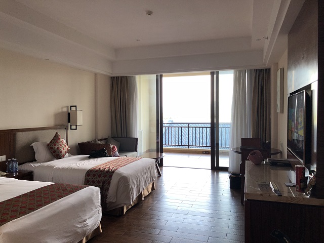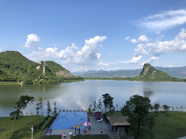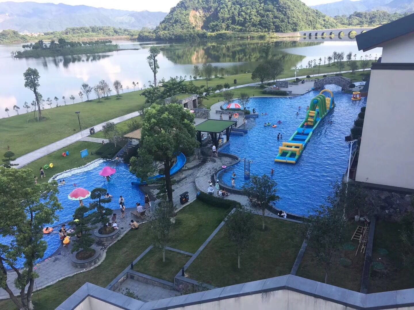 晚上我們?nèi)胱×嗽O施豪華,坐擁壯麗山景,依傍恬靜湖水,交相輝映,讓您沉浸于質(zhì)樸而浪漫的世外桃源的寶晶宮天鵝湖度假酒店。