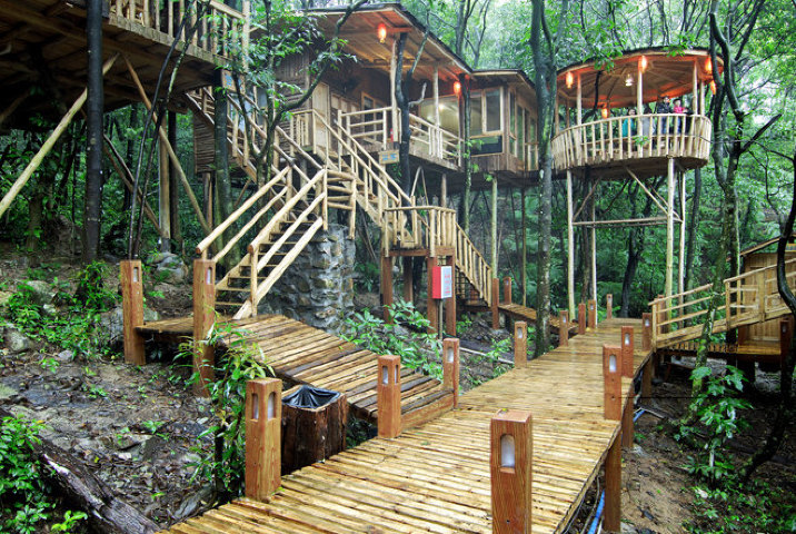 下午來到了英德——天門溝九州驛站;由驛站區(qū)和天門溝九站一廊高山森林峽谷景區(qū)兩大產(chǎn)品組成游覽。我們大隊人馬一邊爬山一邊領略沿途的風景,上山路上都可見到沿山而下的水流,大概天門溝的名稱由來于此。水流在石頭凹陷處形成小水潭,清澈見底,而且十分清涼。