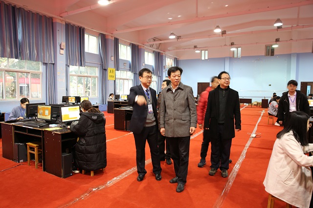 江西財(cái)經(jīng)職業(yè)學(xué)院黨委副書記、常務(wù)副院長(zhǎng)何先應(yīng)教授親臨比賽現(xiàn)場(chǎng)指導(dǎo)。(左邊是全國(guó)職業(yè)院校銀行業(yè)務(wù)綜合技能競(jìng)賽賽項(xiàng)裁判鄭興教授,在本次省賽中擔(dān)任裁判長(zhǎng)。右邊是財(cái)稅金融學(xué)院樊院長(zhǎng))