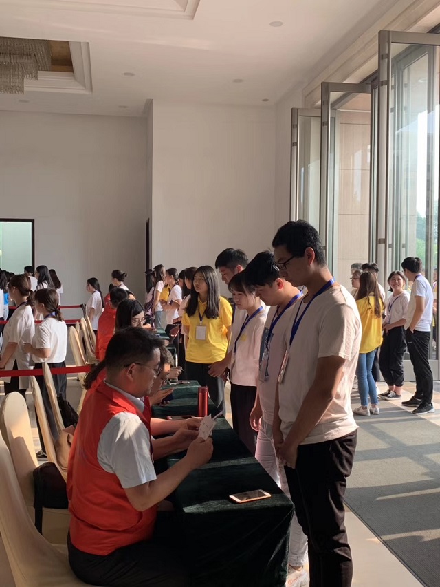 參賽隊(duì)伍統(tǒng)一穿著白色上衣黑褲,按照抽簽順序依次進(jìn)入泰山會(huì)館入口進(jìn)行檢錄進(jìn)場。