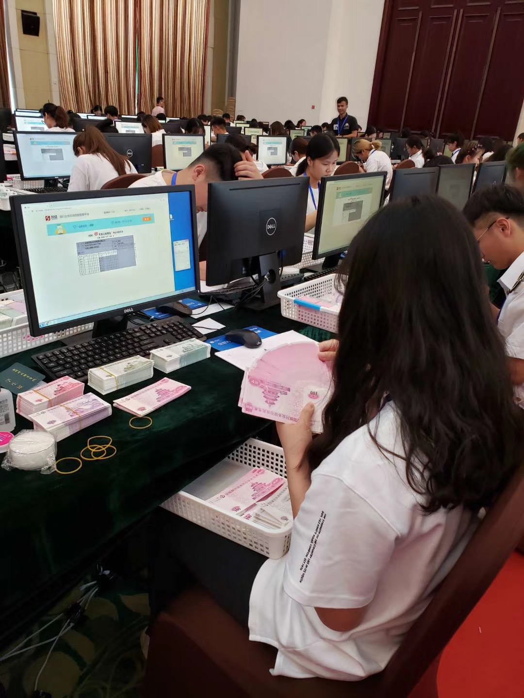 “金融基本技能”主要針對(duì)選手的實(shí)踐動(dòng)手能力方面展開角逐。鍵盤聲滴滴答答、點(diǎn)鈔聲唰唰響、傳票翻飛……選手們神情堅(jiān)毅、動(dòng)作嫻熟,他們平時(shí)的努力在這一時(shí)刻表現(xiàn)的淋漓盡致,才能為我們展現(xiàn)出這精彩的一幕幕。