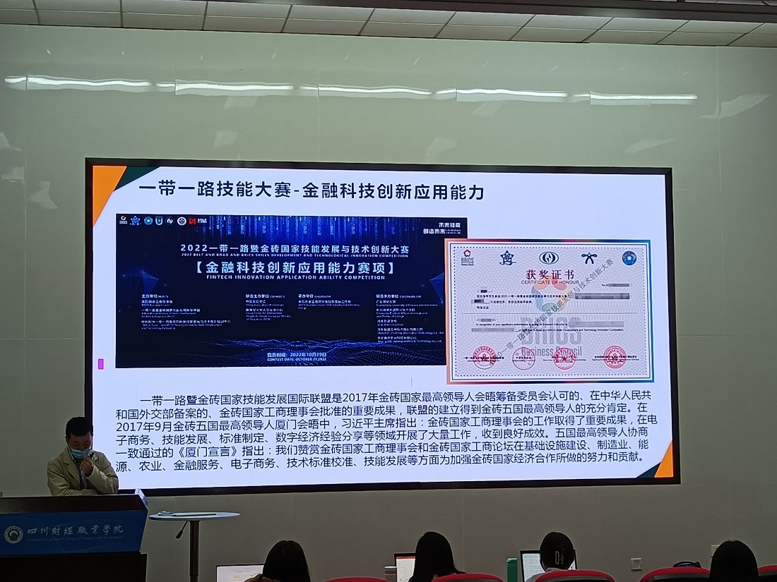 在比賽期間,四川財經(jīng)職業(yè)學院金融學院協(xié)同李琳名師工作室在B210展開數(shù)字化金融人才培養(yǎng)研討會。此次會議由四川財經(jīng)職業(yè)學院金融科技教研室主任李馨老師主持,參加此次會議的有各職業(yè)院校領隊、指導老師和四川財經(jīng)職業(yè)學院金融學院全體專任教師。本次研討會采取線上線下相結合的方式,同時通過“騰訊會議”在線上同步開展。